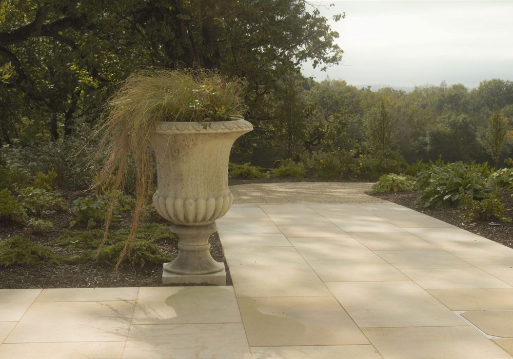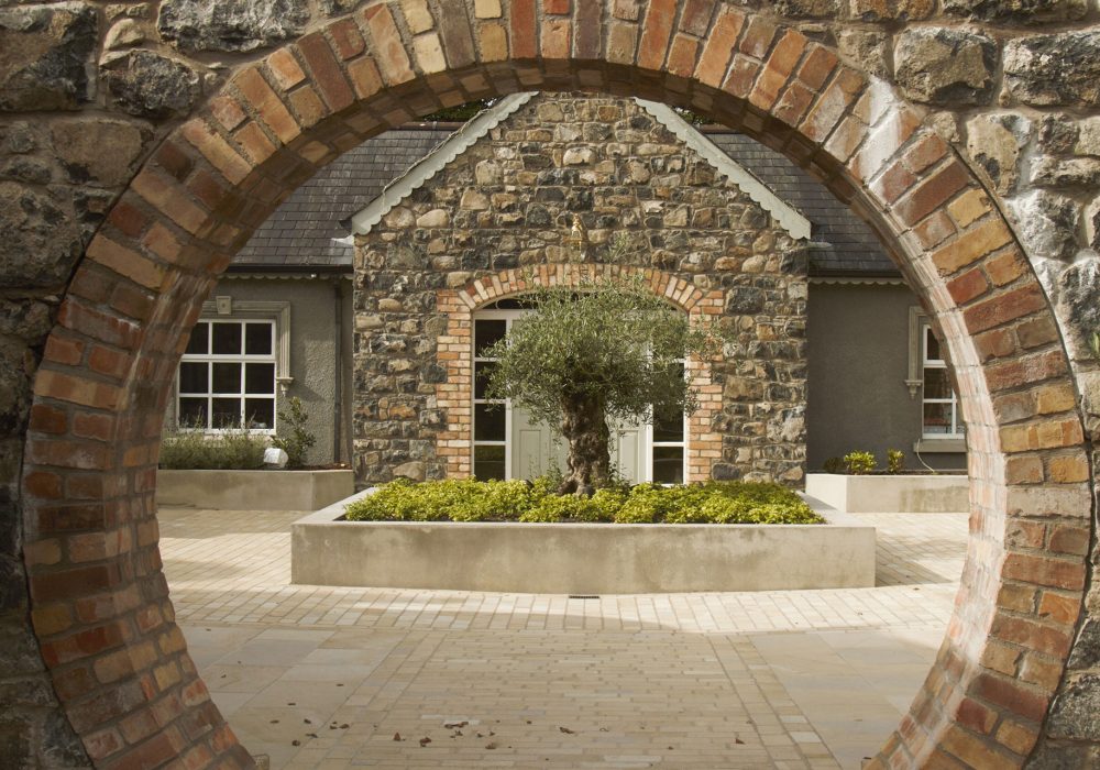 A courtyard was built at the back of the property, accessed from the house through a natural stone arch. The courtyard has been designed to create a series of raised beds to accommodate various plants, with the centre bed blending into the existing buildings.