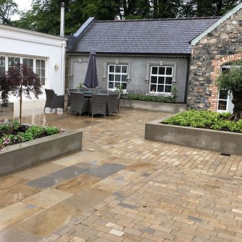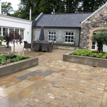 To the rear of the property, a courtyard garden was created, accessed directly from the house and also through a natural stone arch. The courtyard is designed as a series of raised beds, allowing for a rich mix of planting while maintaining a strong sense of enclosure. A central feature bed, planted with a mature olive tree, anchors the space and creates a sheltered, intimate garden at the heart of the home.